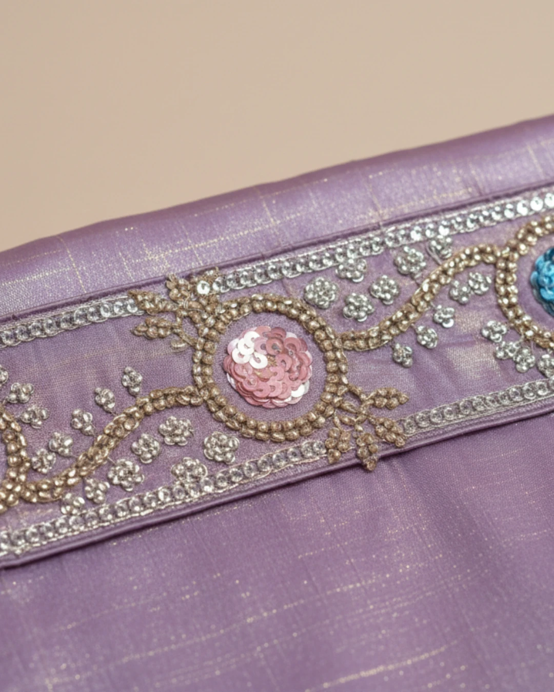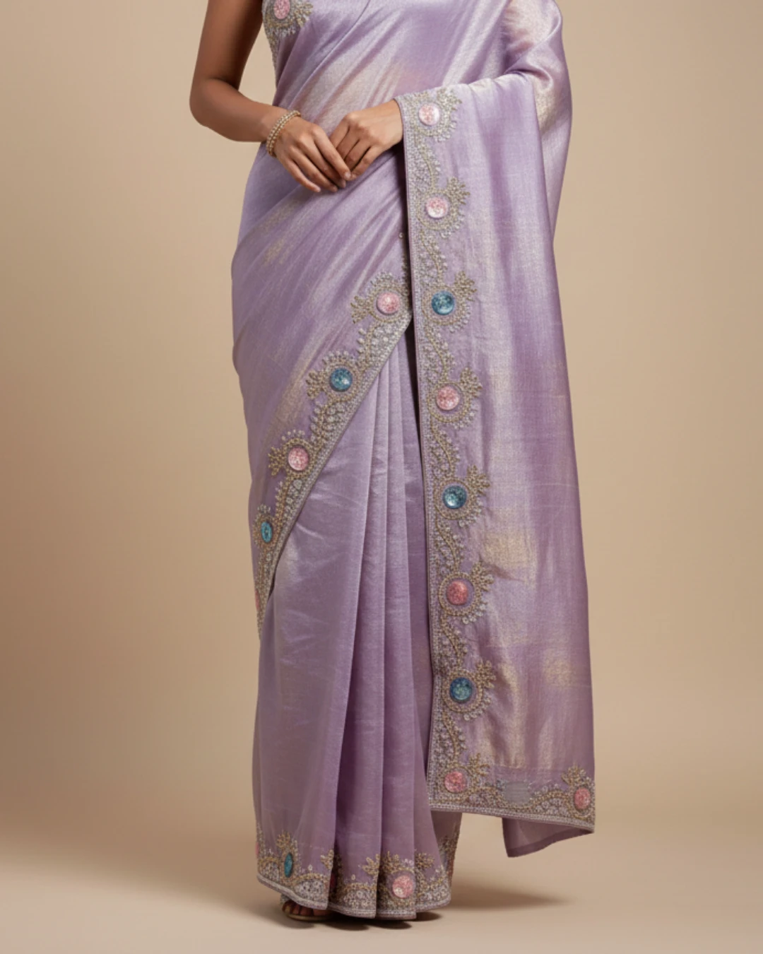 The soothing lavender shade adds a modern yet timeless appeal, making it an ideal choice for bridal functions, receptions, festive celebrations, and party wear. Its fluid fall enhances your silhouette while ensuring comfort for extended wear.