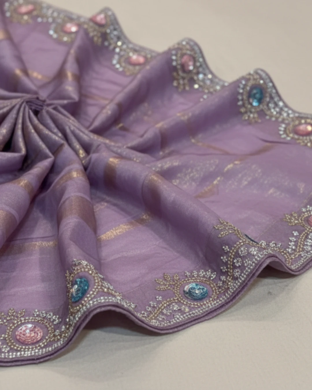 Lavender Satin Silk Saree Soft Luxury for Bridal & Party Wear